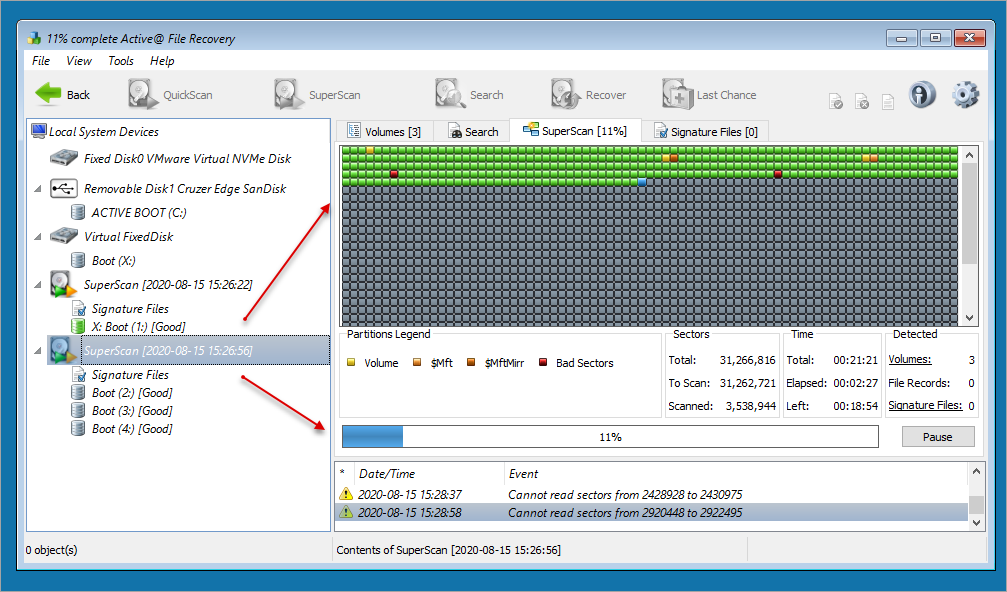 Recovering via SuperScan - if you cannot locate or find your deleted files and folders, to process the whole surface of a disk,